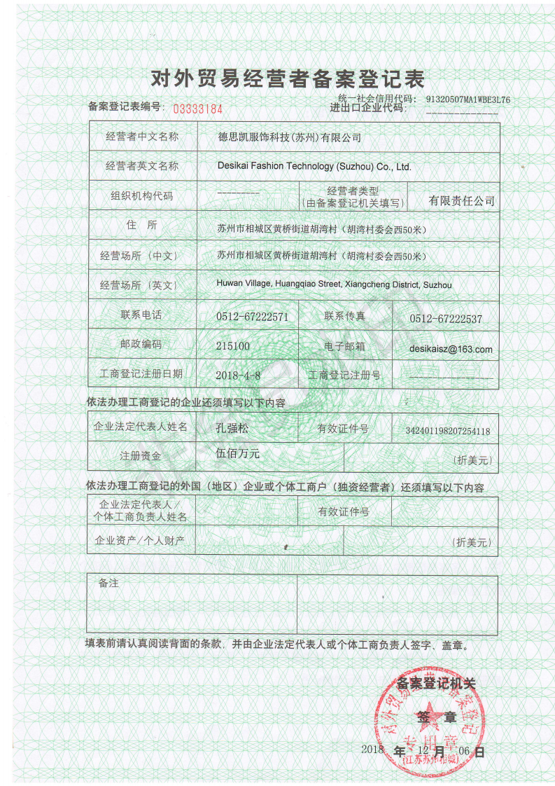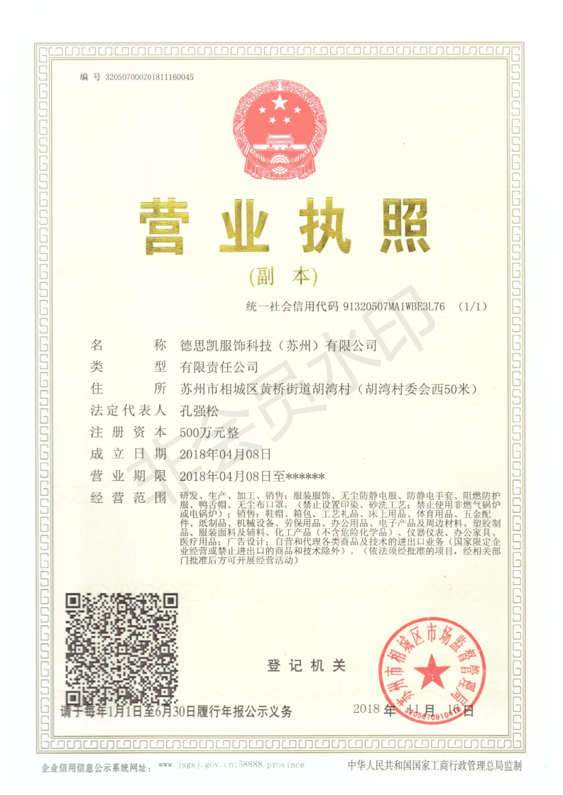 德思凱服飾科技(蘇州)有限公司系蘇州零點(diǎn)職業(yè)服裝廠(2006年注冊(cè))原股東于2018年4月份注冊(cè)成立,主營(yíng)業(yè)務(wù)是阿里巴巴國(guó)際站和績(jī)優(yōu)外企的服裝服飾定制業(yè)務(wù)。本公司是一家集設(shè)計(jì)、生產(chǎn)、銷售于一體的生產(chǎn)型企業(yè),專業(yè)從事各種工作服、職業(yè)裝、休閑服飾的設(shè)計(jì)與生產(chǎn)。公司匯集了從業(yè)數(shù)十年經(jīng)驗(yàn)的服裝設(shè)計(jì)師和優(yōu)秀的管理人才,把“誠(chéng)信立足天下,品質(zhì)引領(lǐng)未來(lái)”作為企業(yè)的指導(dǎo)思想和行為準(zhǔn)則,力爭(zhēng)為客戶體現(xiàn)獨(dú)有的企業(yè)文化。